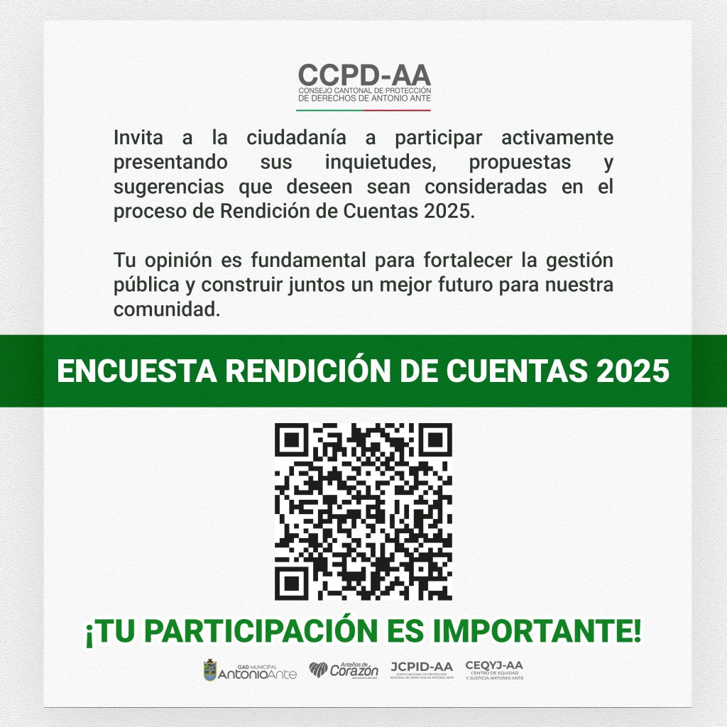 El Consejo Cantonal de Protección de los Derechos de Antonio Ante, es un organismo colegiado integrado de forma paritaria por representantes del Estado y de la sociedad civil…